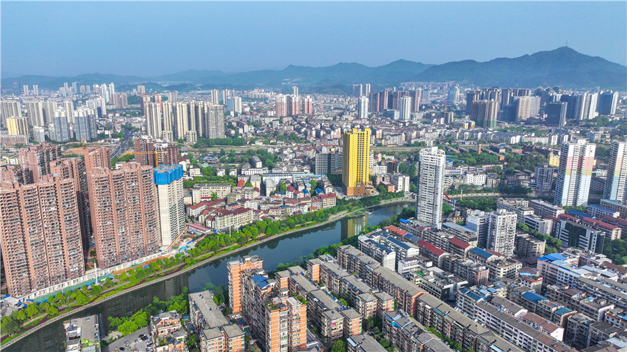 太平溪兩岸高樓錯(cuò)落,綠樹夾道,城市和自然融合共生。(懷化日報(bào)全媒體記者 潘雨 攝)