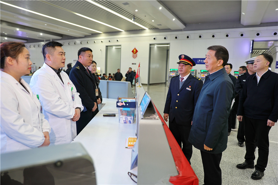 在懷化高鐵南站,許忠建看望慰問值班值守工作人員,了解服務(wù)保障情況,檢查安全防范措施落實(shí)情況,叮囑值班人員認(rèn)真做好服務(wù)保障工作,嚴(yán)格落實(shí)各項(xiàng)安全管理制度,確保旅客“走得了、走得好、走得順”。