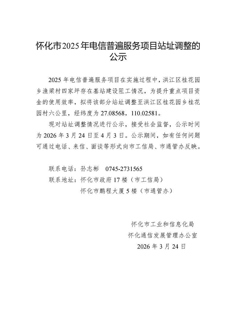 懷化市2025年電信普遍服務(wù)項(xiàng)目站址調(diào)整的公示