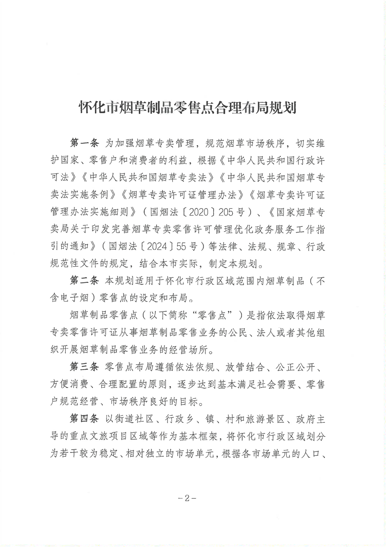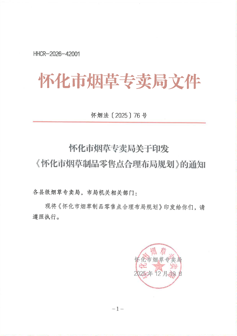懷化市煙草專賣局關(guān)于印發(fā)《懷化市煙草制品零售點(diǎn)合理布局規(guī)劃》的通知